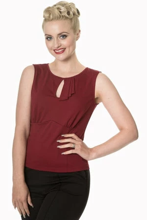 A rockin’ retro style, ladies sleeveless top design designed by Banned Apparel, the basic instinct top, with a teardrop shape cutout at the neckline, available in a choice of colours.