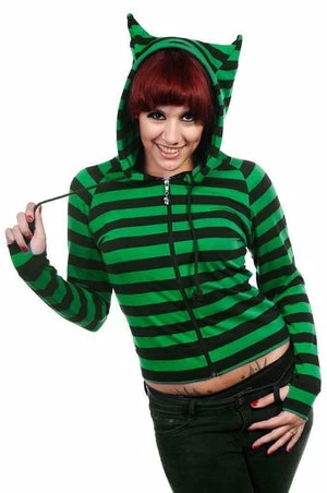 Be Death’s little cute kitty in this “Cat Ears Striped” hoodie from Banned. Made from 95% cotton and 5% elastane with an all over striped print and little cat ears on the hood. Available in various colours.