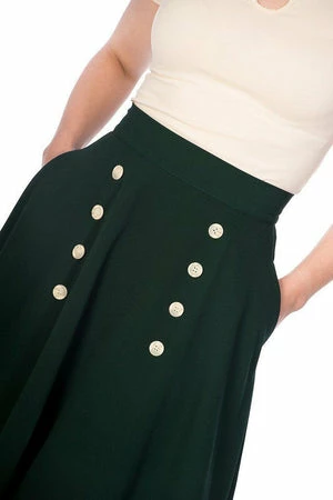 The vintage skirt has front button detailing, a figure accentuating shape and it fastens with a zipper and a button at the back.