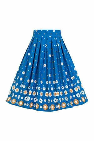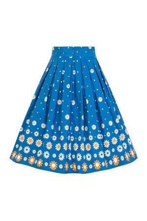 The vintage skirt has all over daisy print, a figure accentuating shape and it fastens at the back with a zipper.
