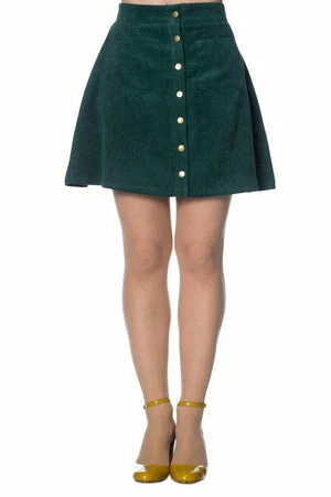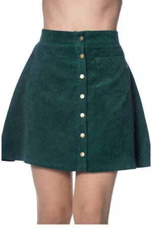 Pair this adorable rockabilly skirt from Banned Apparel, with a retro top and block heels to complete your sixties look! The style is available in green, navy and tan colour.