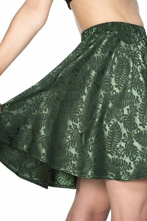 The flared skirt has pleats detailing, fern leaf detail, elasticated waist, mid thigh length and a flattering fit.