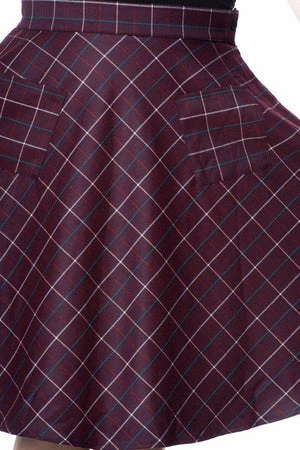 This tantalizing rockabilly skirt from Banned Apparel, is sure to make a perfect everyday skirt for work or weekends. The style is available in teal and bordeaux and also up to plus sizes.