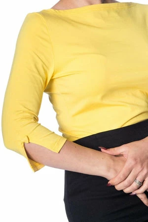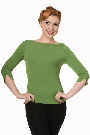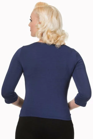 This is a delightful, rockabilly, ladies short sleeve top from Banned, the modern love top.This style is available in a large choice of appealing colours and has a round neckline and half length sleeves.