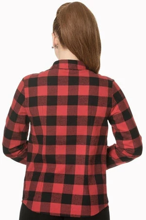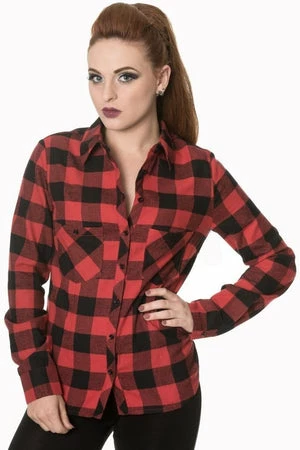 A kickass ladies lumberjack style, plaid shirt by Banned Apparel, the “no boundaries shirt”.