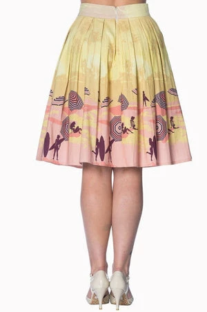 The vintage skirt has a lovely 50s parasol themed print, a high waist and a flared skirt.