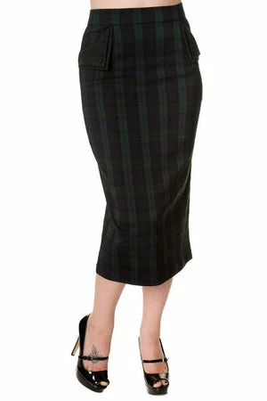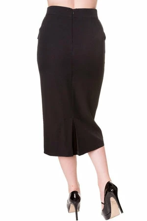 Get in the groove with this pencil skirt from Banned. Made from 100% polyester with a plain pattern and pockets at the sides.