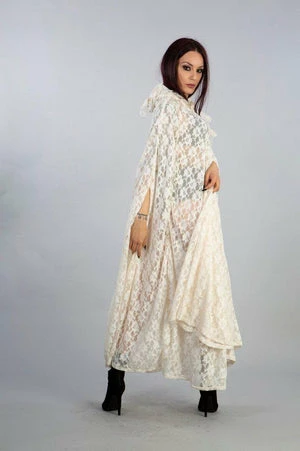 This Cherryl high quality, mesh lining, hooded cape has fine lace and a flattering fit.