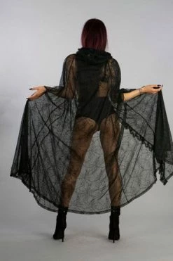 Burleska Cherryl Hooded Cape In Black Lace And Red Mesh Lining