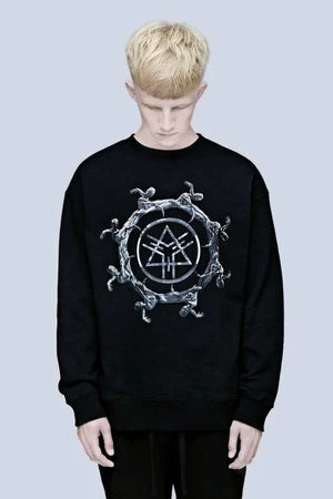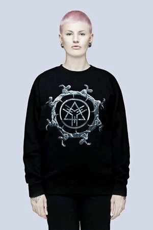This is an amazing gothic black sweater from Long Clothing, designed in collaboration with Pussykrew and featuring an eye-popping abstract print.