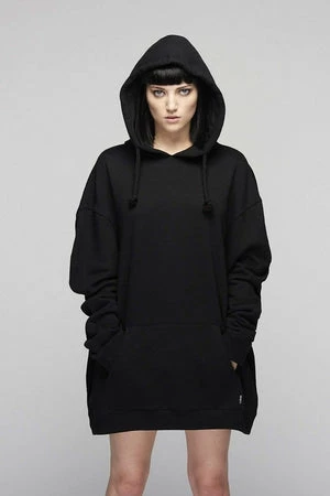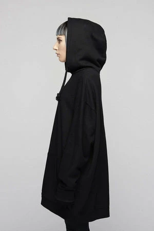 A luxury, warm and comfortable, oversized, plain black, unisex hoodie from long clothing, made from 100% loopback cotton.