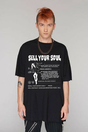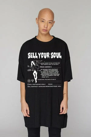 The oversized t-shirt has front ’Sell your soul’ caption print, short sleeves, a crew neckline and a regular fit.