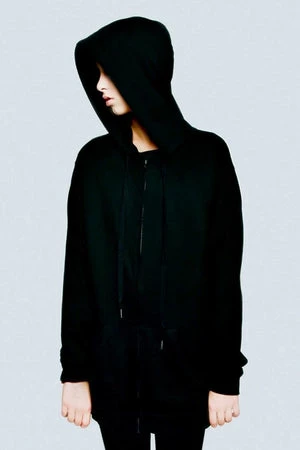 An exceptional quality, plain black, lightweight, zip-up hoodie from long clothing, which is very warm and comfortable and is made from 100% loopback cotton.