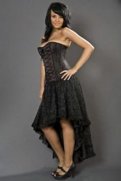 Burleska Gypsy Victorian Gothic Corset Dress In Black Taffeta And Black Mesh