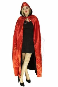 Dr Faust Black Silk And Red Velvet Reversible Hooded Cape – Anaca