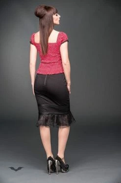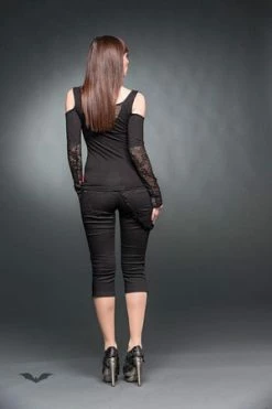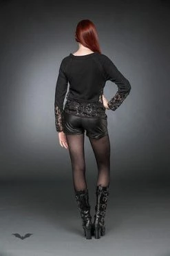 A beautiful cardigan for those dark ladies of the night. With lace-like sleeves, a draped front and the cardigan falling past the knees, this is a wicked addition to any Gothic Queen’s wardrobe.