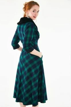 Voodoo Vixen Marica 1950s Olive Herringbone Wide Collar Dress