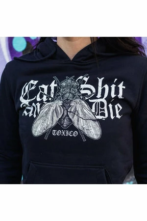 This ladies’ super comfy hoodie has Toxico x Bad Bones tattoo, high quality Eat S**t And Die embroidery, inner soft brushed fabric, a high neckline, long sleeves, ribbed cuffs, a regular fit and flat cut kangaroo pocket.
