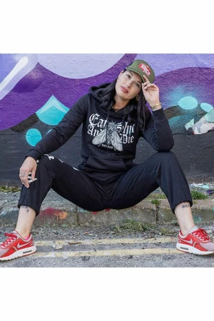 Feel like a badass every time the graphic shows through in this superfly gothic ladies’ hoodie by Toxico!