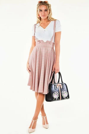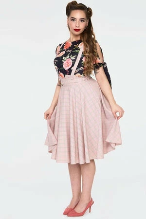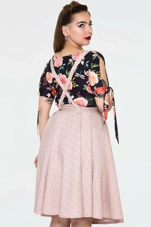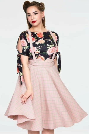 The midi high-waisted full skirt has all-over plaid print, suspender straps detailing, button detailing and it fastens with a hidden zipper at the side.