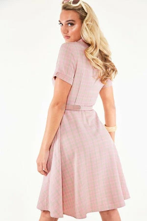 This sleeveless, midi dress has plaid design, blazer collar detail, matching belt detail, a V-neckline, a flattering fit, oversized bow details and it fastens at the front with buttons.
