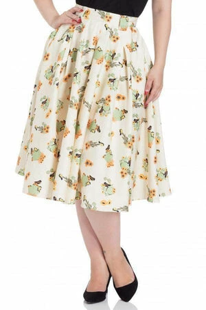Bring an extra touch of vintage to your look, with this “Verity” Beige swing Rockabilly skirt from Voodoo Vixen. Featuring a captivating cactus and sunflower themed print, belt loops, side pockets and it fastens with a hidden back zipper.