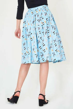“Wendy” a stylish, retro cotton skirt by Voodoo Vixen with a light blue colour and an appealing dogs print. This flared rockabilly skirt has a waistband and a hidden zip at the back to fasten.